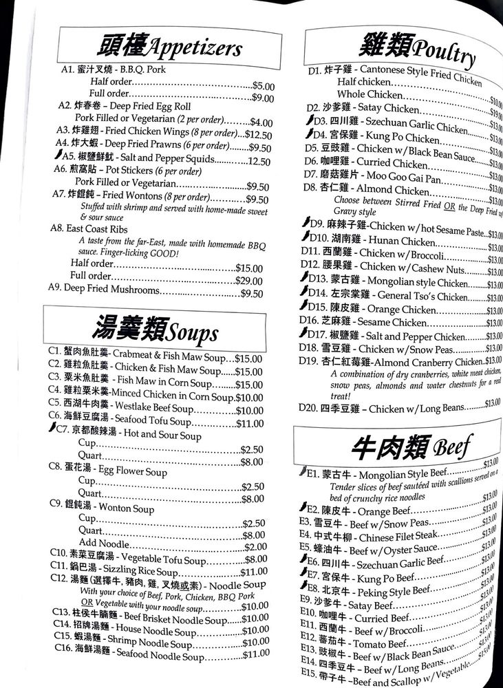 East Coast Ribs, Egg Rolls, Honey Walnut Prawns, Orange Chicken